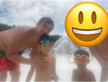 - 子供たちとプールや海で、堂々と笑って写真を撮る